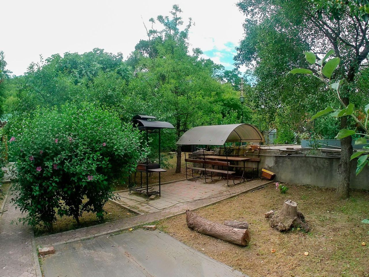 Оборудована площадка с мангалом для отдыха.