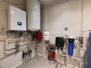 в бойлерной - качественный котел ВАХI, производства Италия, бойлер Аtlаntiс (Франция),бесперебойную подачу воды обеспечивает накопительный бак на 500 литров с качественными, долговечными насосами, производства Италия, хотя центральное водоснабжение этого района стабильное, без перебоев даже в летний период.