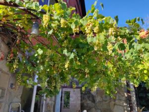 Много фруктовых деревьев, виноградная беседка. ЕСТЬ несколько выводов воды для полива .