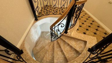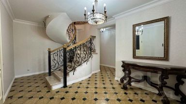 Дизайн: Дизайнерский ремонт в Классическом стиле с дорогой отделкой, мрамор, ковка, винтовая лестница с витражом из Муранского стёкла
