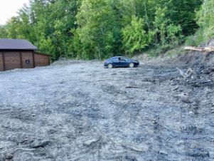 Участок ровный , по фасаду 28 м, имеет небольшой уклон.