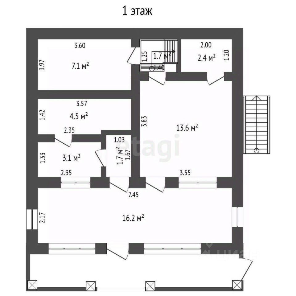 На первом этаже расположена кухня-столовая, баня, санузел и котельное помещение с автономной системой отопления, что гарантирует низкие коммунальные расходы.