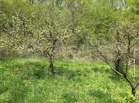 Зeленый участок в тихом месте поcёлка, вeсь дeнь освeщённый солнцeм.