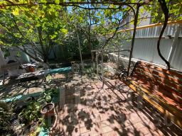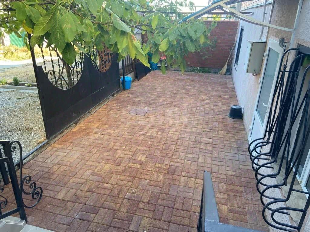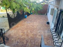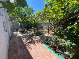 Во дворе положена тротуарная плитка, в других местах керамогранит. Растут фруктовые деревья(персик, черешня, инжир, вишня, виноград)