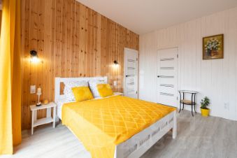 Дом светлый, просторный, с панорамным остеклением, большая кухня-гостиная, две спальни, гардеробная, большой сан.узел.
