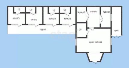 Отдельно есть хозяйская часть, состоит из кухни гостиной , спальня, гардеробная и кабинет, просторный санузел.