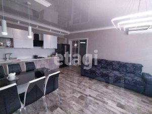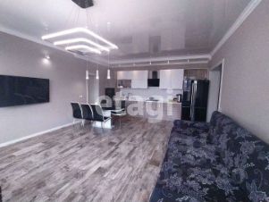 сердце дома - просторной кухни-гостиной с большим панорамным окном с подсобным помещением и пятью видами зонированой подсветки. Кухоный гарнитур, большой гостевой диван и столовая зона прекрасно сочетаются.