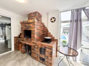 - полностью застекленная оборудованная летняя кухня со столовой, мангальной зоной;