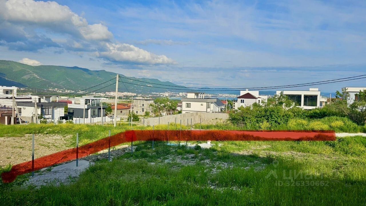 Участок 4 сотки расположен в перспективном районе, всего 200 метров от центральной дороги. Но главное — с него открывается захватывающий дух вид на всю Геленджикскую бухту и бескрайнее море. Ваши утренние кофе и вечерние закаты будут украшены этой потрясающей картиной!