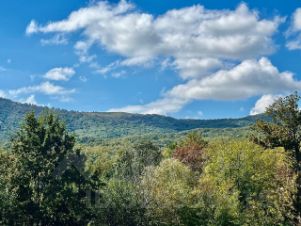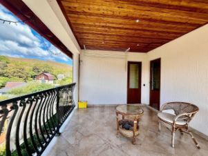 На втором этаже- три спальни (одна из которых детская ) из двух спален выход на террасу откуда открывается прекрасный вид на горы и красивый лес, где можно за чашечкой чая, кофе а может и с бокалом вина наслаждаться тишиной, дышать свежим воздухом,любоваться прекрасным видом на горы, мечтать и планировать.