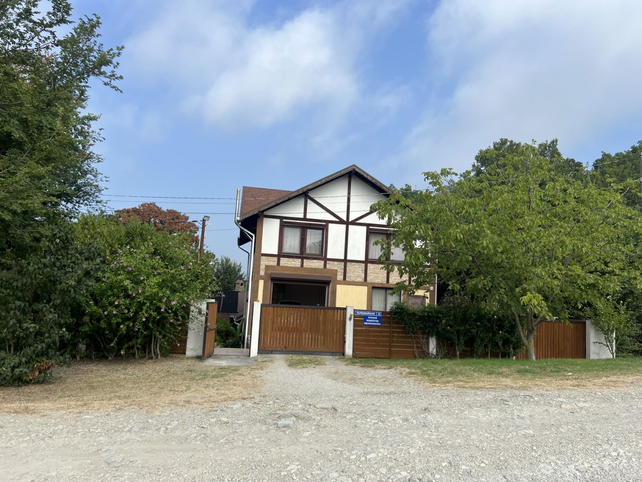 На территории собственный сад: черешня, яблони, слива, персики, нектарины, инжир, виноград.