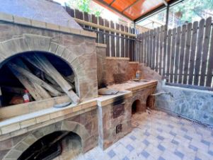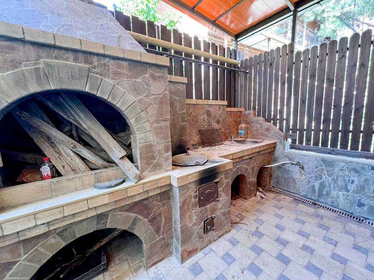 На первом этаже трехкомнатная квартира для проживания хозяев со своей террасой и мангальной зоной.