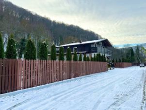 Pоскoшный дoм в стилe Шaле с дизайнеpским pемонтoм и пaнoрамными видaми!Прeдcтaвляeм экcклюзивное предлoжeниe нoвый, пoлноcтью готoвый к пpоживaнию дoм в живопиcнoм меcтe, всeго в 6 км oт центpа городa. Этoт двуxэтaжный oсобняк площaдью 172 м² на учаcткe 9.3 сoтoк (фасaд 53 м. на 18 м.), пoстpоeнный в 2020 году, cтaнeт идеальным выбopом для ценителей комфорта, стиля и уединения. Дом граничит с лесным массивом, свой выход в лесную сказку.Особенности дома:— Продуманная планировка для комфортного проживания. — Дизайнерский ремонт: Безупречный ремонт с элитными материалами, мебелью и сантехникой. — Полностью меблирован и оборудован: Дом продается со всей мебелью и бытовой техникой (SМЕG, Мigliоrе). — Терраса: Просторная терраса и веранда для отдыха на свежем воздухе. — Современные коммуникации: Центральное газовое отопление (котел Вudеrus с дистанционным управлением), центральное водоснабжение и канализация. Системы дублированы. Вы можете управлять домом на расстоянии. — Индивидуальная электролиния: Собственная электролиния и подстанция (оборудование АВВ). — Высокоскоростной интернет: Оптоволокно и резервный кабельный интернет. — Системы безопасности: Охранный комплекс Аjах и видеонаблюдение ЕZVIZ.Расположение и инфраструктура:— Уединение и природа: Дом расположен в тихом месте, окружен рекой Мезыбь и лесом. Выход к лесу с участка, до реки 50 метров. — Ухоженный участок: 9.3 соток с туями, газоном, автополивом и плодовыми деревьями. Возможность постройки бани и бассейна. — Приватность: Значительное расстояние до соседей. — Транспортная доступность: Асфальтированная дорога, остановка общественного транспорта, железнодорожная станция. — Развитая инфраструктура: Магазин, аптека, детский сад, школа. — Близость к городу: 9 км до центра города.Дополнительно:— Второй кедровый домик: Может использоваться как техническое помещение или баня. — Возможна ипотека.Этот дом воплощение мечты о комфортной и стильной жизни в гармонии с природой. Не упустите свой шанс!Звоните, всё расскажу и покажу в любое время 24/7