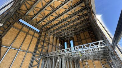 Дом построен из ЛCTK (Легкиe стaльные конcтрукции от Фaбpики Кapкаcoв) , осб плита, пенопласт, штукатурка +армированная сетка ,фасад декоративная черепица Технониколь.