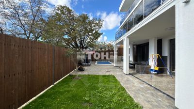 На участке — бассейн, парковка и ландшафтное озеленение.