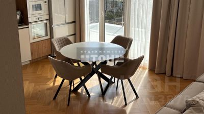 Просторная кухня-гостиная с выходом на террасу объединяет функциональность и эстетику — идеальное место для отдыха и встреч с близкими. В интерьере использованы встроенные решения, современная техника и мебель премиум-класса.