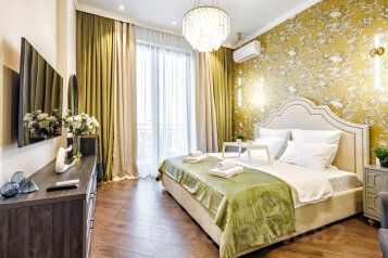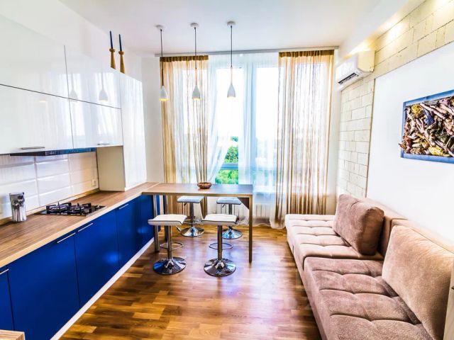 ЖИЛЬЕ: НОВЫЕ Дизайнерские Luxury апартаменты уютны и продуманы до мелочей для Вашего комфортного длительного отдыха! Отлично подойдут как для деловой поездки, так и для путешествия, торжественного, спортивного или культурного мероприятия, а так же фотосессий! Удобное размещение до 4 гостей! Самый ближайший корпус с потрясающим видом на море и бассейн. Высота потолков 3,5м Комната с 2-спал. Кроватью King-Size + ортопед. Матрас с эффектом памяти. Хлопковое постельное белье и полотенца по количеству гостей. Шторы блэкаут. Выход на балкон с зоной отдыха. Гостиная с удобным 2-спал. расклад. Диваном, Мощные СПЛИТ-системы (тепло-холод), ЖК ТВ (SMART) 65 дюймов в каждой комнате, вместительные шкафы, плечики, гладильная доска, утюг, фен, пылесос, сушилка для одежды. Кухня оснащена ВСЕЙ бытовой техникой (в т.ч. посудомойка, СВЧ, кофе машина, мульти варка, тостер) и посудой. Санузел: ванна, стиральная машина 12кг., фен, шампунь, гель, тапочки и халаты. В квартире индивидуальный газовый котел - холодная и горячая вода без перебоев 24/7 скоростной ИНТЕРНЕТ Wi-Fi. По предварительному запросу детская кроватка-манеж (до 3-х лет) . 300 руб./сутки.