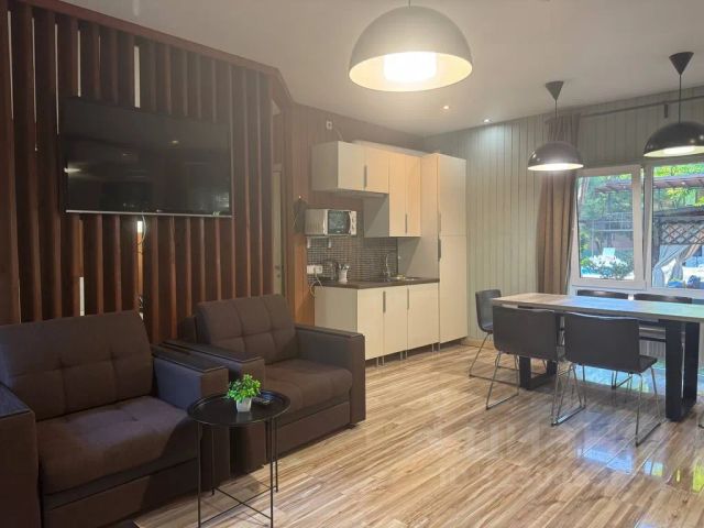 Красивый, современный, элегантный, чистый Дом с ухоженной территорией. Полностью меблирован и оборудован современной техникой и мебелью, вся отделка и дизайн на высоком уровне. Хорошее постельное белье, красивая посуда, в комнатах установлены кондиционеры. В доме 2 этажа - 2 спальни,на первом этаже большой раскладной диван, кухня, ванная комната и 2 сан. узла. Открытая планировка гостиной. На первом этаже сауна на дровах с жаркой парилкой и бассейном с постоянной температурой 30С. Бассейн крытый, работает противоток (очень полезно для спины, а так же делает каждый Ваш заплыв более интересным) Сауна оплачивается отдельно. 2.000р за 4-5 часов. Топим дровами. На втором этаже элитный бильярдный зал. Массажное кресло сейчас не работает, его залили водой. На территории имеются 3 парковочных места. Отдельно стоящая беседка с мангалом, решетками, шампурами, тандыром. До моря 10 минут на машине (Криница, Бетта). До водопадов 20 минут на машине, до деревни дольменов 15 минут пешком. В летние месяцы доступно очень много фруктов, можете попробовать и заказать все что по нраву. Массажное кресло временно не работает, его залили водой Дом вмещает в себя не более 6 человек Дом сдается минимум на 2 суток Заезд с 12:00, выезд до 12:00 Скидки обсуждаются с каждым индивидуально
