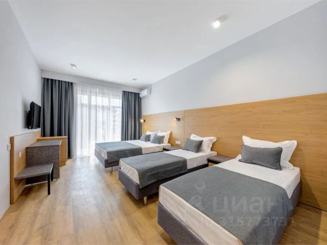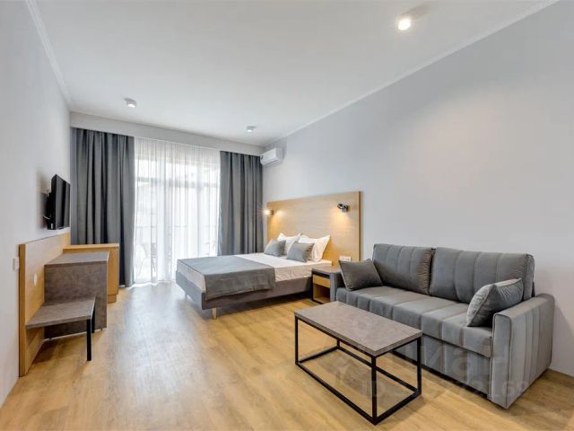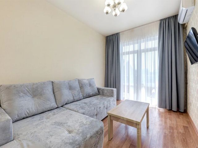 Комфортный трехместный номер с балконом (невидовой) состоит из комнаты и санузла (общая площадь 20-25 м2). Номера данной категории расположены на 2 и 4 этажах. Номер оснащен двуспальной кроватью, односпальной кроватью с ортопедическими матрасами и раскладным диваном (ширина 1,2 м), тумбочками, шкафом для одежды, туалетным столиком с зеркалом, журнальным столиком, мини-холодильником, кондиционером, телевизором с плоским экраном. Номер укомплектован постельным бельем, полотенцами. В ванной комнате, укомплектованной феном и набором туалетно-косметических принадлежностей, установлен душ.