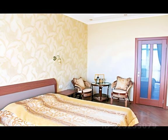 В аппартаменте большие витражные окна и двери.