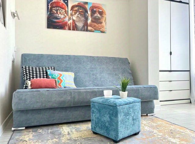 Уютная квартира евро двушка в 10 минутах ходьбы до море через парк аттракционов выход на пляж в квартире в спальне большая кровать в кухне студии большой раскладной диван телевизор в каждой комнате кондиционер холодильник микроволновка вайфай плита, постельное бельё, посуда,дом небольшой своя придомовая территория,стоянка для авто возле двора,тихо уютно,