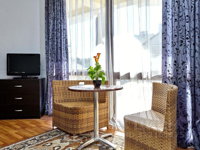 Двухместный номер с балконом. Номер оснащен: две односпальные кровати или двуспальная кровать, прикроватные тумбочки, прикроватные бра, туалетный столик, шкаф, вешалка, зеркало, электрический чайник, мини-холодильник, телевизор, кондиционер, шторы блэк-аут. Ванная комната: душ, зеркало, фен, комплект полотенец, тапочки, набор гостиничной косметики. Небольшой балкон, сушилка для белья. Арт Шале — это комфортабельный гостевой дом в Геленджике, где вас ожидает роскошный отдых в уютной атмосфере. В шаговой доступности — живописный берег моря. Доступны разнообразные категории номеров со всем необходимым. Например, есть просторные апартаменты с отдельной спальней и кухней-гостиной. Каждый укомплектован современной техникой и мебелью, включая мягкое спальное место, кондиционер, телевизор, бесплатный Wi-Fi, а также индивидуальный санузел. В некоторых категориях есть полноценная кухня для приготовления еды. В каждом номере имеется холодильник, чтобы вы могли устроить перекус в любое время. Среди дополнительных преимуществ — два замечательных бассейна, один из которых открытый с подогревом для купания в любое время года, а второй — в спа-зоне с гидромассажем, джакузи и красивым водопадом. Поблизости вы найдете столовые, кафе, пиццерию, суши-бар, магазины. Любители рыбалки могут посетить специализированный магазин рядом, где вы сможете приобрести всё для рыбалки. До аэропорта — 2,2 км, а до ближайшего железнодорожного вокзала в Новороссийске — 27,4 км.