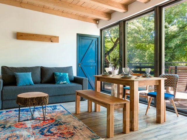 PETRA GARDEN BEACH HOTEL — Ваш уголок Греции на скале у моря. Уютный отель в Средиземноморском стиле, скрытый среди зелени, всего в нескольких шагах от собственного пляжа. Здесь нет суеты, громкой анимации и толп — только солнце, море, тёплый ветер и забота о каждом госте. Номера с индивидуальными террасами, натуральные материалы в отделке, авторский интерьер с греческими акцентами, тихие вечера под звуки цикад и свежая еда в семейном ресторане "Фета на море". Отель создан для тех, кто ищет отдых без шаблонов — живой, душевный, с атмосферой загородного дома у моря. Мы ценим спокойствие, искренний сервис и пространство, где легко дышать. Отель Петра Гарден расположен на чистейшем Черноморском побережье, на закрытой территории в заповедном месте на 1-ой линии хутора Бетта. До международного аэропорта Геленджик - 56 км, до железнодорожного вокзала - 82 км. Отель предоставляет 34 номера разных категорий. Из номеров и с террас открывается великолепный вид на море, горы и лесной массив. Аренда апартаментов включает следующие удобства: современная мебель, двуспальная кровать, бытовая техника, WI-FI Smart TV (Ivi, amediateka), гладильная доска, сушка, оборудованная кухня, полный комплект посуды для приготовления и приёма пищи, шампунь/гель/мыло и фен. Также к услугам гостей - панорамный бассейн с джакузи. На закрытой территории растёт много красивых растений и деревьев. Ручные животные - ежики, кролики, еноты, кошки и белки - порадуют Вас своим вниманием. На участке имеется зона барбекю, детская площадка, гамак, зоны отдыха с прекрасными видами на море, а в центре участка течёт горный ручей. Помимо дикого пляжа у подножья отеля, в 10 минутах ходьбы находится центральный пляж Бетты. В 0,64 км от отеля находится Феодоровский храм, а в 0,81 км — смотровая площадка. Инфраструктура также включает магазины продуктов, аптеки, кафе, пабы, суши, зоомагазины, салоны красоты, детский сад, школу. Завтрак либо полупансион предоставляется за отдельную стоимость. Курение внутри апартаментов запрещено. Размещение с питомцами допускается по согласованию. PETRA GARDEN BEACH HOTEL — это не просто отдых. Это настроение. Элегантные апартаменты с изолированной спальней и просторной гостиной, общей площадью с террасой 70м². Из панорамных окон и с террасы открывается вид на парк. В номере: кухня, обеденная зона, дизайнерская мебель. Идеальны для длительного отдыха и путешественников, ценящих приватность и домашний комфорт. Включает следующие удобства для гостей: современная мебель, двуспальная кровать, бытовая техника, WI-FI Smart TV (Ivi, YouTube). Гладильная доска, сушка, оборудованная кухня, полный комплект посуды для приготовления и приёма пищи. Шампунь/гель/мыло и фен. 2-й этаж.